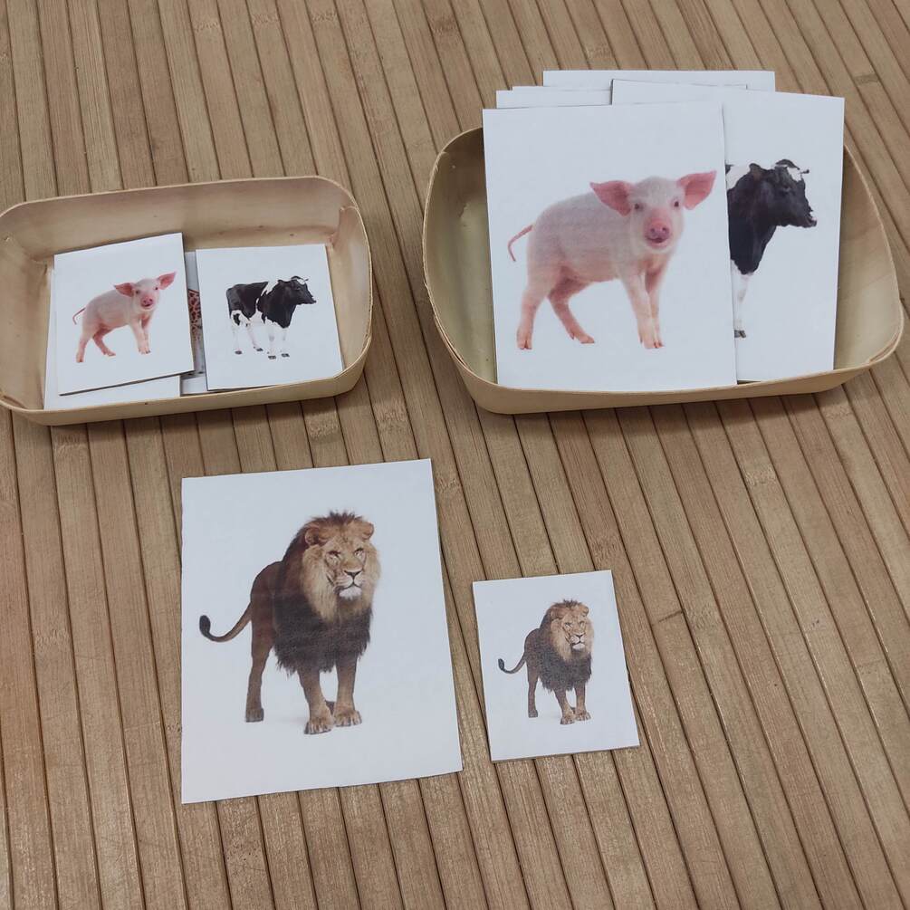 - 12 plantillas para trabajar los tamaños (grande y pequeño) a través de animales.